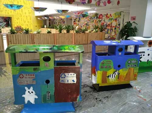 2月28日,繪本班的孩子們在美術(shù)部曾老師的帶領(lǐng)下,開展了“美化環(huán)境,裝點新宮”的繪畫活動,原本被置放在青宮各個角落的垃圾桶一天之間舊貌換新顏,搖身變成了一件件美麗可愛的藝術(shù)品!
