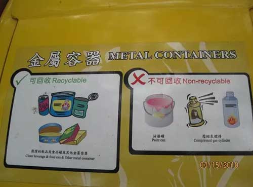我國各大城市現在的垃圾箱只有兩個桶,一個是“可回收垃圾桶”,一個是“不可回收垃圾桶”。這樣給垃圾分類帶來很大的麻煩,玻璃、報紙、刀片、塑料瓶同時扔進可回收垃圾桶,垃圾間也容易相互污染,清潔工分類不可能精細。這樣造成垃圾分類十分粗放。居民住宅小區是最需要垃圾分類的,但我們幾乎是把所有垃圾裝在一個袋子,扔進沒有分類的生活垃圾箱,基本都被填埋了。建議:中國制定更高的垃圾箱標準,設置更加科學的分類垃圾箱,分類為紙、塑料、金屬、電子垃圾(廢舊電子產品、充電器、電池等)、適合降解填埋的生活垃圾。居民在家里將紙、金屬、塑料、電子垃圾等分類,將菜葉、剩飯等垃圾裝袋單獨仍進專門的垃圾桶。這樣才能算是最基本的發展循環經濟,建設節約集約型、環境友好型社會。