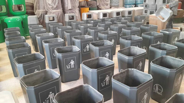 玻璃鋼垃圾桶桶身和內膽部分,采用高級玻璃鋼材質一次成型,經過打磨、除塵 、噴漆等一系列后期工藝然后出成品。
