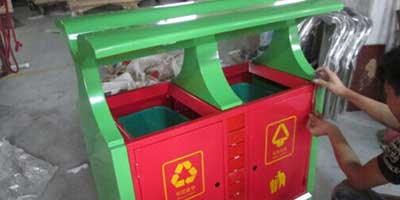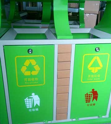 欣方圳鋼制戶外分類垃圾桶均選用優質的冷軋鋼板經噴砂處理去油去銹后,鋼板表面抗紫外線丙稀酸油漆多層噴涂,