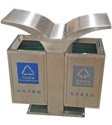 • 使用范圍:展翅不銹鋼分類垃圾桶表面光滑、亮麗,是電梯口、寫字樓、學校、物業、賓館、酒店、機場、汽車站等擺放的首選。