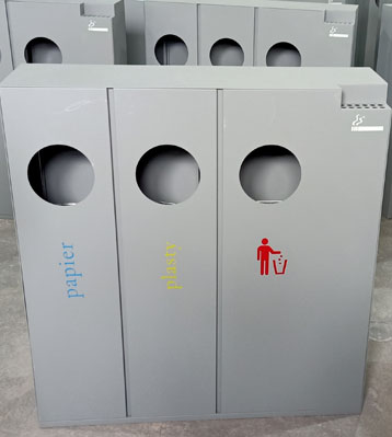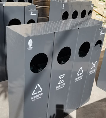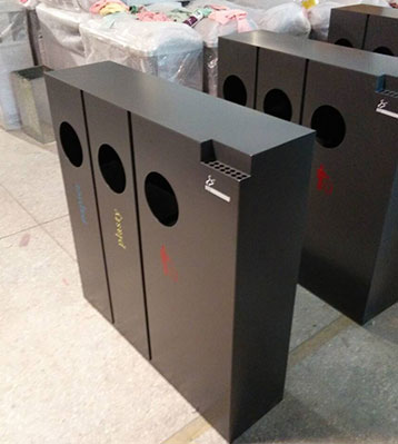欣方圳酒店室內(nèi)鋼制三四分類垃圾桶批量生產(chǎn)圖
