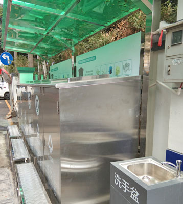 欣方圳不銹鋼社區垃圾收集站垃圾分類收集亭現場擺放圖