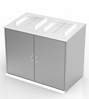 深圳龍華大型社區垃圾收集站外桶整體采用1.0mm和1.2mm厚304#優質不銹鋼相結合焊接而成,單筒帶一個腳踏雙筒帶兩個腳踏,配大容量內桶帶臺階適合垃圾量大居民生活區。