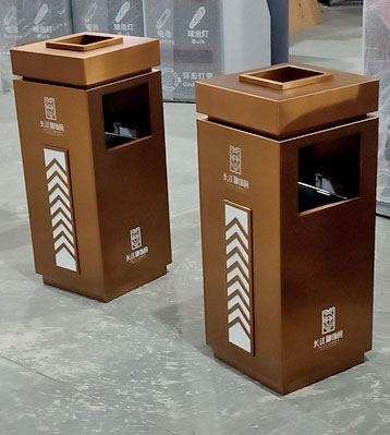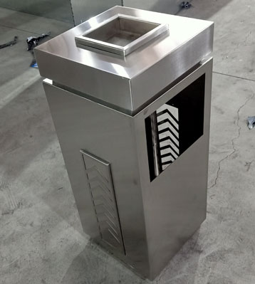 樓盤不銹鋼電鍍垃圾桶采用優質不銹鋼材質經激光切割數控折彎焊接成型,表面焊點打磨光滑平整無利口,再進行電鍍工藝,防銹升級10倍更耐用。