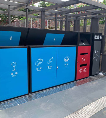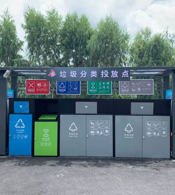 • 使用范圍:深圳福田區垃圾分類收集點應用于居民社區、工業園、學校、車站、城市街道等垃圾量大的場所擺放。