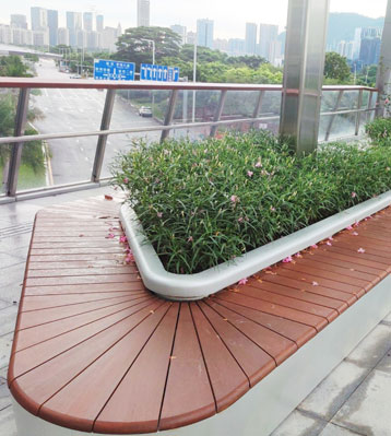 • 產品材質:前海合作區跨街公園G9天橋廊橋景觀花池座椅采用加厚不銹鋼材料焊接成型,表面噴塑,凳面由竹木拼接而成,花箱位下沉玻璃鋼內膽,可直接種土。金屬亮澤,內外表面光潔,易于清潔,表面可做電鍍壓紋、水鍍、蝕刻、納米鎳、無氰堿性光亮鍍銅工藝效果,無指紋處理高檔大氣;