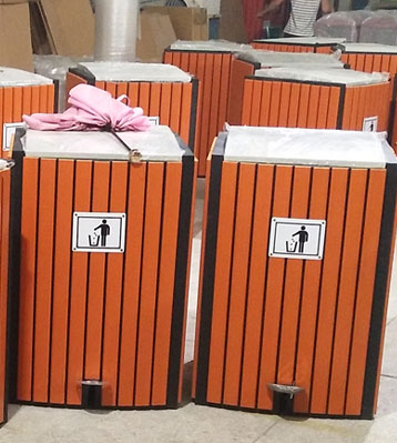 戶外鋼木腳踏式垃圾桶工廠生產圖