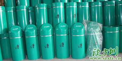 • 產(chǎn)品材質(zhì):欣方圳農(nóng)行垃圾桶采用優(yōu)質(zhì)冷軋鋼經(jīng)除油-除銹-表調(diào)-磷化處理后,表面采用汽車靜電粉末噴漆工藝,噴塑粉主要有丙烯酸粉末、聚酯粉末等。雙層防銹,漆面色澤耐久;